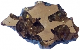СЕЙМЧАН. Локация: Магаданска област, Русия. Полирана плочка на късче от метеорит паласит с последващо химическо третиране за да се видят Видманщетови ивици. Сеймчанският метеорит е определен от групата на паласитите /по името на първия им изследовател Петер Симон Палас, проф. в Санктпетербургския университет/. Открит през 1967 год. 312,3 кг. И още един къс 50 кг. през 2004 г.