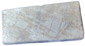 АЛЕТАЙ. Локация: Синдзян, Китай. Полирано късче от железен метеорит, химически третирано за да се видят Видманщетови ивици.