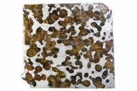 Плочка паласитът Фуканг, нарязан, за да се видят скъпоценните оливинови кристали