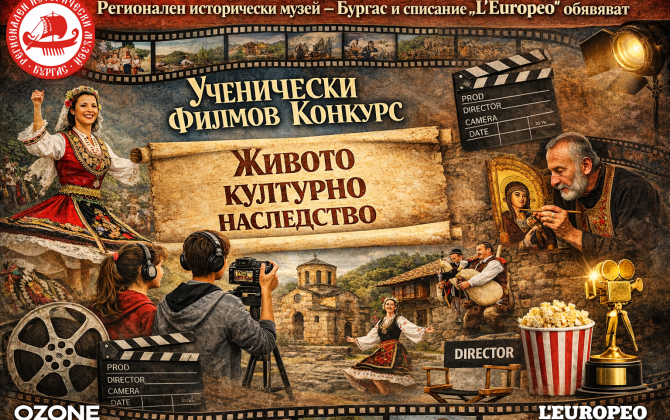 Регионален исторически музей – Бургас и списание „L`Europeo“ обявяват ученически филмов конкурс на тема „Живото културно наследство“ Инициативата е насочена към ученици на възраст от 13 до 19 годин....