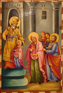 Библейският разказ ни отвежда далече в дълбините на историята, в семейството на св. Ана и св. Йоаким, праведните родители на св. Дева Мария. Още преди нейното раждане те дали обещание пред Бога, че когато Мария навърши 3 години ще я посветят на духовна служба. Когато се изпълнило времето, с цветя и песни, св. Ана и св. Йоаким тържествено завели Мария в Йерусалимския храм. Детето само изкачило стъпалата до входа на храма, където я посрещнал първосвещеник Захария. Голяма била радостта на св. Ана и св. Йоаким. Благословено било тяхното семейство да посвети малката си дъщеря в служба на Бога. Техният духовен празник е повод и всички ние да споделим надеждата и вярата им в християнските добродетели.