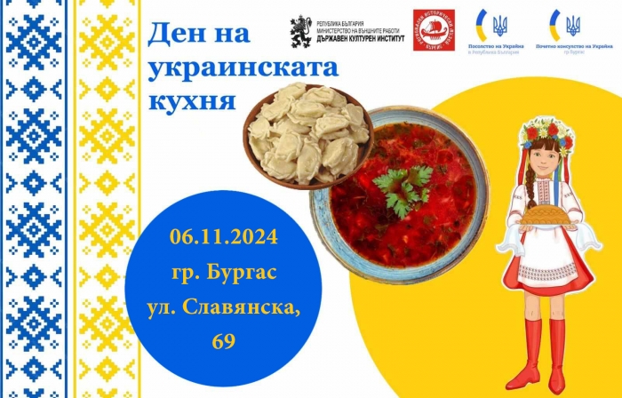 На 6 ноември 2024 г. (сряда) от 12:00 ч. в Етнографския музей (на улица „Славянска“ 69) ще се проведе Ден на украинската кухня в град Бургас.