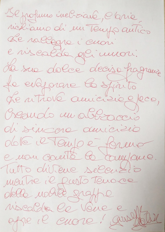 Специални благодарности и на италианеца г-н Джузепе Геци, който дойде от Балчик, заинтригуван от нашия анонс. Оказва се, че той съвсем не е случаен посетител – майстор е по китайски традиционни бойни изкуства – четвърти дан карате шотокан, първи дан кобудо Окинава, шести дан Кунг Фу У Шу Шаолин Чуан, шести дан Кунг Фу У Шу Тай Чи Чуан. В периода 2017 – 2023г. е издал 18 книги (www.ilmiolibro.it), посветени на китайската философия и история, жизнената енергия на човека, даоиски дисциплини, Кунг Фу У Шу, различни техники на самозащита. Публикуваме стихотворението, което той написа в двора на Етнографския музей.