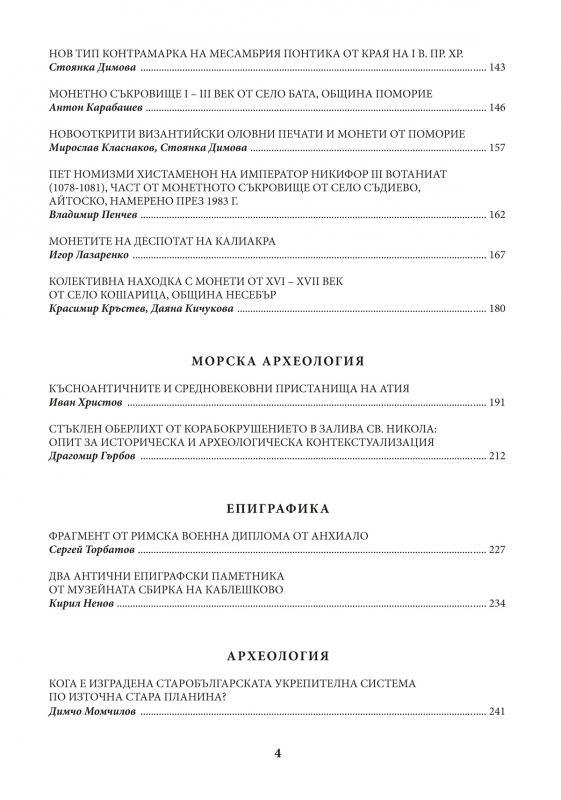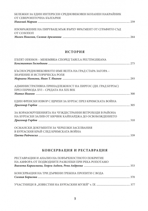 Сборникът е отпечатан като том 9 от Известията на Бургаския музей. В него взеха участие 36 учени от България и чужбина, представители на национални, регионални и общински музеи, научни институти към БАН, Министерството на културата, Национална художествена академия. Рубриките в тома са нумизматика и сграфистика, морска археология, археология, история и консервация и реставрация. Редакционната колегия е от проф. д-р Иван Христов – главен научен редактор, д-р Игор Лазаренко, д-р Милен Николов, д-р Драгомир Гърбов. Съставител е д-р Милен Николов.