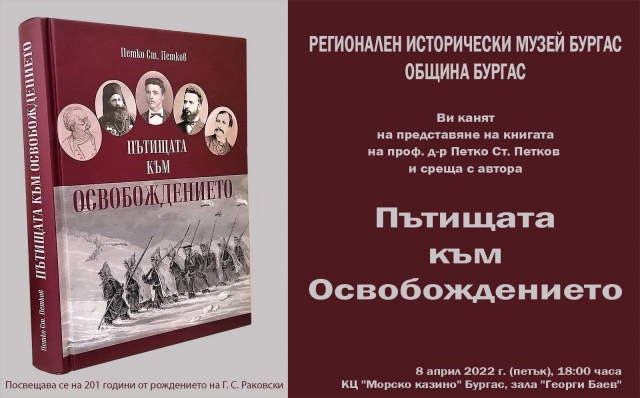 Представянето на книгата, посветено на 146 години от Априлското въстание и 201 години от рождението на Г. С. Раковски, ще се състои на 8 април от 18 часа в зала „Георги Баев“ на КЦ „Морско казино“.