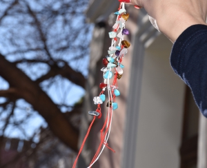 И тази година служителите в Природонаучния музей в Бургас са усукали бели и червени конци за здраве и благоденствие, с вплетени различни минерали за любов, за късмет - тюркоаз, аметист, планински кристал, яспис, гранат, розов кварц, тигрово око и др. Някои пък са украсени със седеф или корали, аквамарин, тигрово око, нефрит и много други.