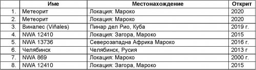 История: В 9:22 сутринта (местно време) на 15 февруари 2013 г. ярко огнено кълбо е видяно над областите Курган, Тюмен, Екатеринбург и Челябинск. Жителите на район Челябинск чуват голяма експлозия. Ударната вълна унищожава прозорците в Челябинск и околните градове. Много хора са ранени от парчетата от стъкло. Множество (хиляди) камъни паднаха като дъжд, които са извадени и събрани от снега от местните хора веднага след експлозията. Общата маса, събрана от местните хора със сигурност е над 500 kg.