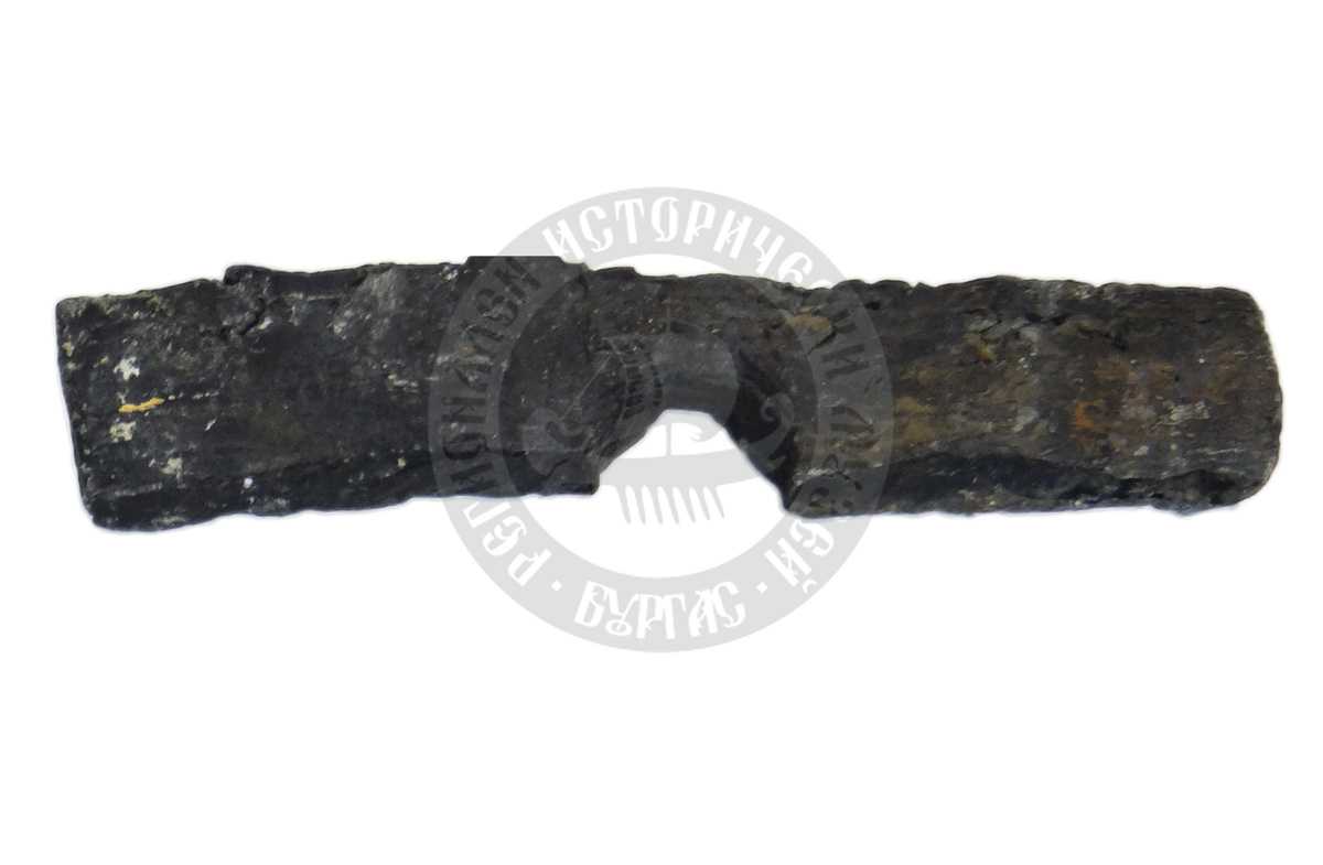 Описание: касетъчен. Липсва едната половина. Форма на правоъгълен паралелепипед с полукръгъл отвор на едната страна