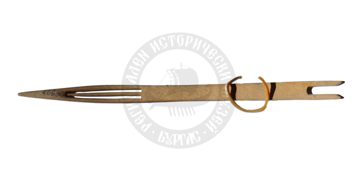 Инв. №: 1068 Фонд: Зорница Наименование: Рибарска игла Тип: игла Описание: Материал: дряново дърво Ширина(см): Дължина(см): 23,7 Височина(см): Тегло: Местонахождение: гр. Бургас