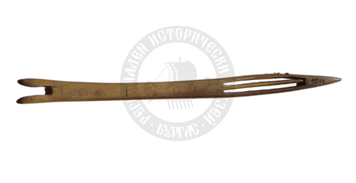 Инв. №: 1071 Фонд: Зорница Наименование: Рибарска игла Тип: игла Описание: Материал: дряново дърво Ширина(см): Дължина(см): 20 Височина(см): Тегло: Местонахождение: гр. Бургас
