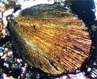 Разрез на хондрула с решетковидна структура, под микроскоп