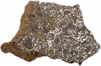 Парче от метеорит Евкрит, NWA 15923. Открит е през 2022 г. в пустинята Сахара от номади, продавачи на повечето северноафрикански метеоритни находки. Най-големият камък на тази находка е бил 12 килограма. Евкрит са ахондритни каменни метеорити от базалтова скала от кората на Веста, изхвърлени по време на сблъсък с друг астероид. Евкритите се състоят предимно от бедни на калций пироксен и богати на калций плагиоклаз (минерал анортит).