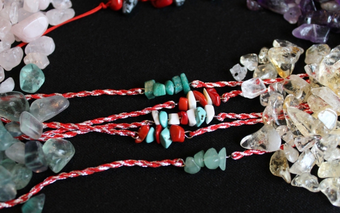 И тази година служителите в Природонаучния музей в Бургас са усукали бели и червени конци за здраве и благоденствие, с вплетени различни минерали за любов, за късмет - тюркоаз, аметист, планински кри....