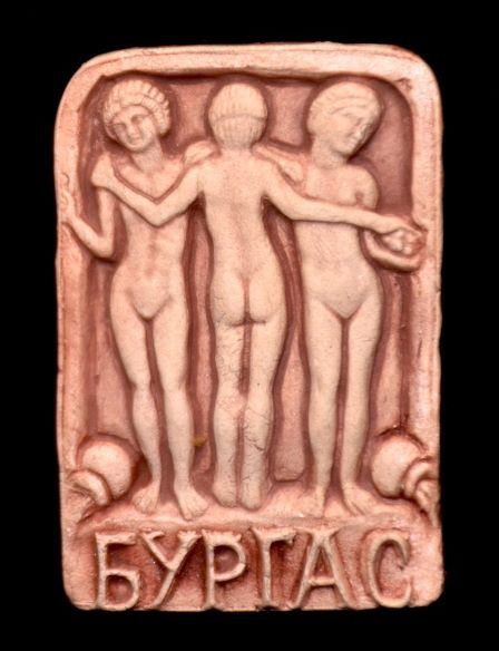 Магнит с изображение на трите нимфи, покровителки на лечебните извори в Акве Калиде.