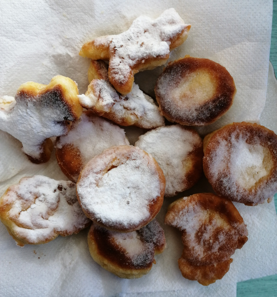 Lalanges were one of the sweet things available, loved by little ones and big ones. The recipe is simple. With flour, water and a little salt, they made a rare mixture and with a spoon let them fry in hot oil. Then, warm they were served, sprinkled with sugar or drizzled with honey or petmez. They also made large lanlang - "ακιτμάδεϛ", which were soft as cotton.