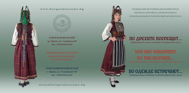 The catalog presents the colorfully and variety of traditional clothing in Burgas. 21 authentic costumes from Strandzha, Karnobat, Aytos, Eastern Stara Planina, etc. were photographed. The phtographed costumes belongs to the ethnographic groups Ruptsi, Tronki, Zagorci, Planinci. Some of them have been in the funds of the museum so far and have not been shown to the public. The photos are accompanied by a description of each clothes in Bulgarian, Russian and English.