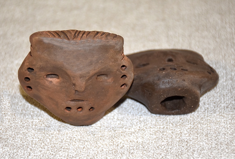 A creative ceramic replica, handcrafted with tools and technologies analogous to prehistoric practice. It represents a ceramic head of a Chalcolithic (Stone-Copper Age) goddess, patroness of nature.