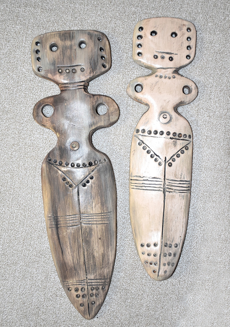 A creative (author's) ceramic replica, made by hand with tools and technologies analogous to prehistoric practice. It depicts a flat bone idol from the Late Chalcolithic (Late Stone-Copper Age), symbol of fertility.
