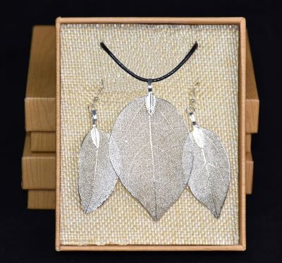 A unique set of earrings and necklace. Handmade
